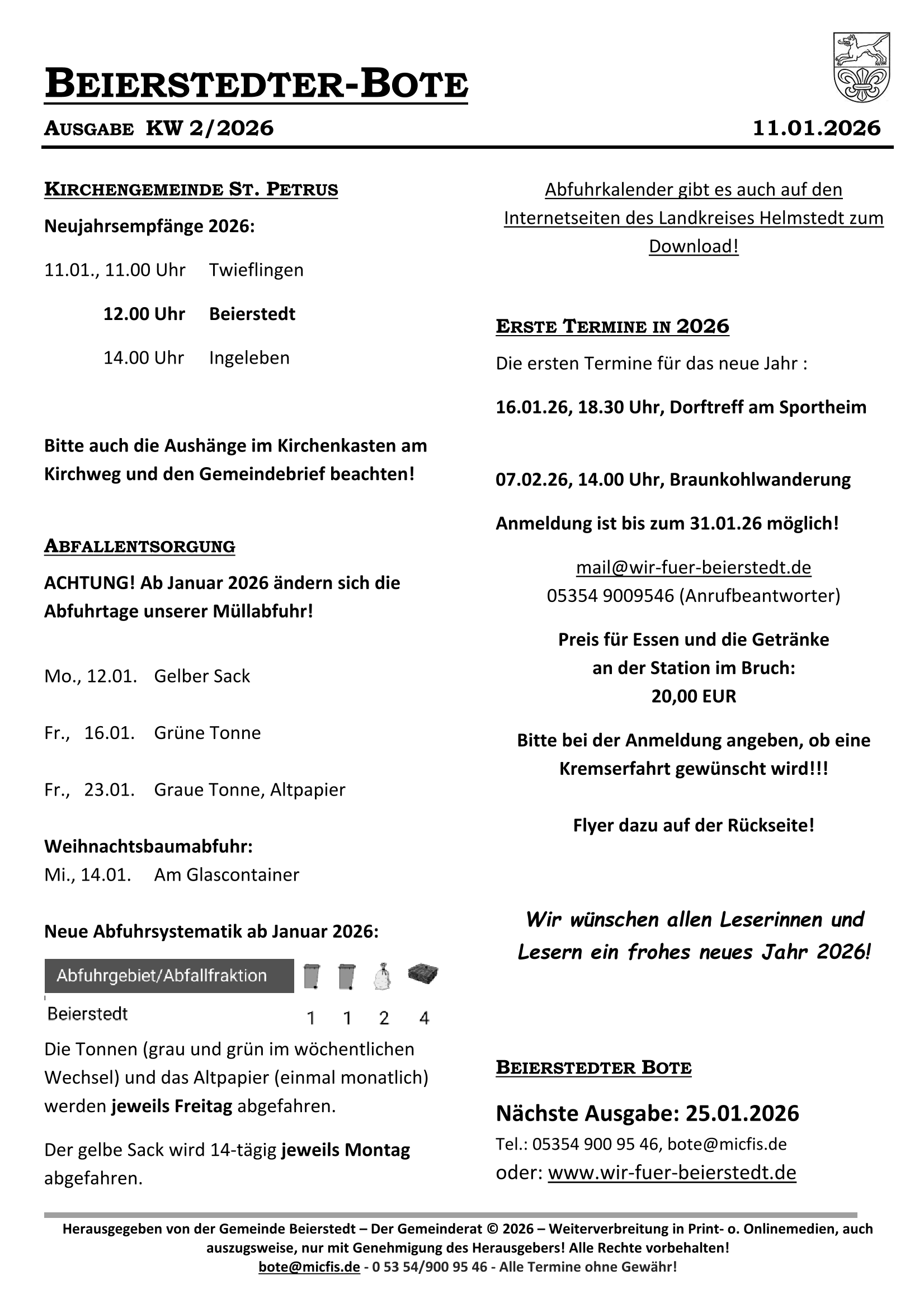 Beierstedter Bote – 11.01.2026
